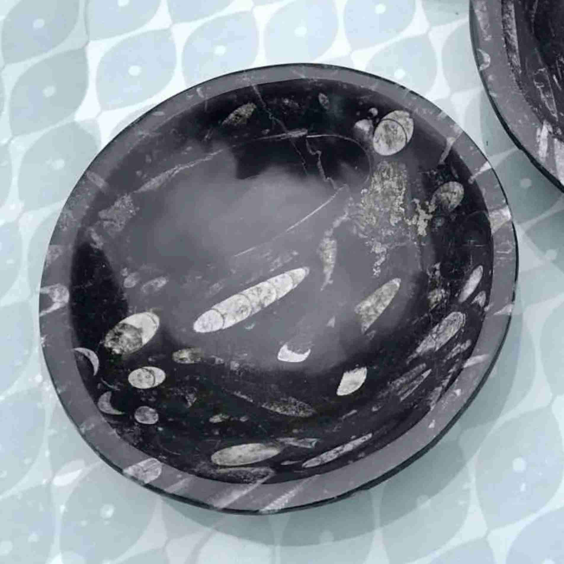 These are genuine natural fossils and with the beauty of nature no 2 are exactly the same, each bowl or other Orthoceras item we may have for sale is unique & we LOVE Unique!