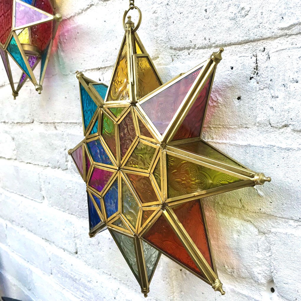 Hand Crafted Metal Work & Glass Moroccan Style Star Lanterns