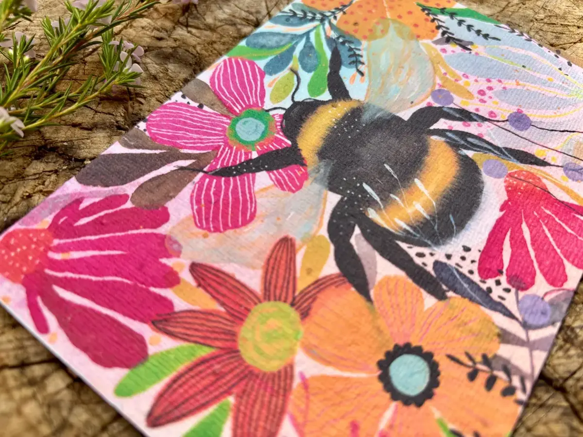 Vibrant Floral Bumble Bee Plantable Seed Paper Card
